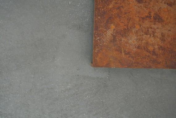Mineralische Spachteltechnik mit Naturglimmer. Durch die dezente matte Optik passt es hervorragend zum oxidierten Stahlblech.
