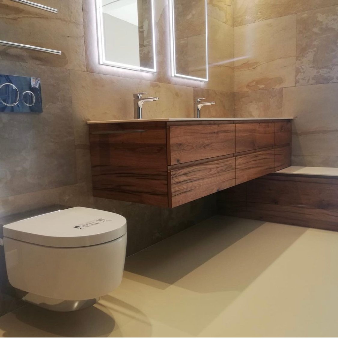 Der Belag ist sogar geeignet für Nassräume (Duschen etc.) !
