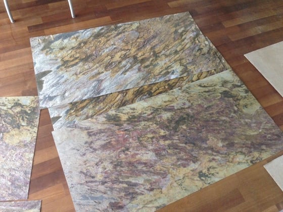 Die Platten vor Montage, durch Auslegen optimieren wir das Erscheinungsbild.